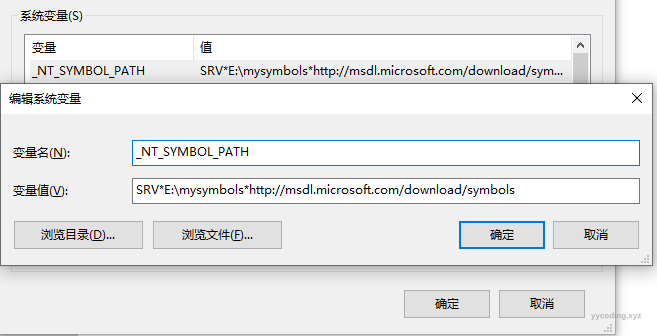 当然安装完新版的WinDbg是可以直接使用了,但是为了使用的更愉快,需要配置一下符号表及其位置,最简单的方法是在操作系统里的系统变量里新增一个“_NT_SYMBOL_PATH”的环境变量,值为:
