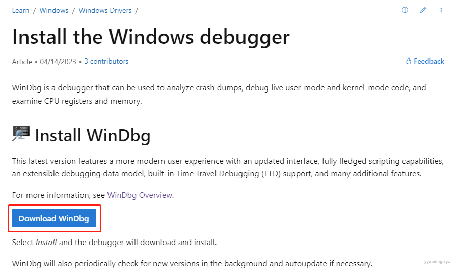 https://learn.microsoft.com/en-us/windows-hardware/drivers/debugger/windbg-overview