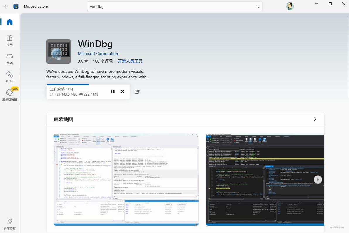 如果你的Windows Store能正常打开,并且能正常下载和安装WinDbg,比如如下图,那就再好不过了,下面的部分不用看了。