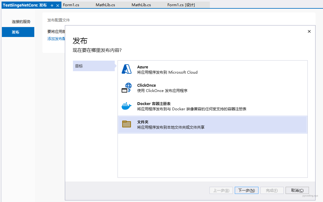 ▲ 默认发布选项为可移植,这里面的exe不包含依赖的dll以及运行时
