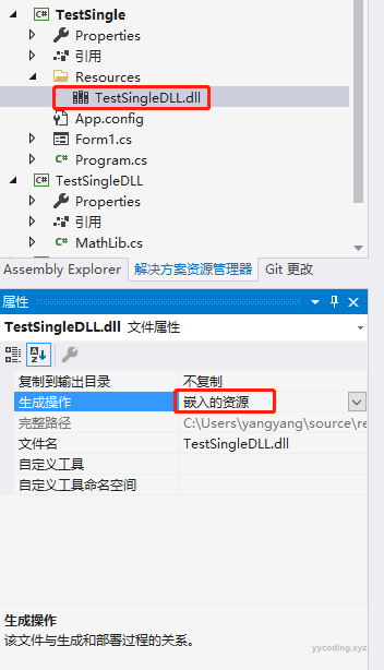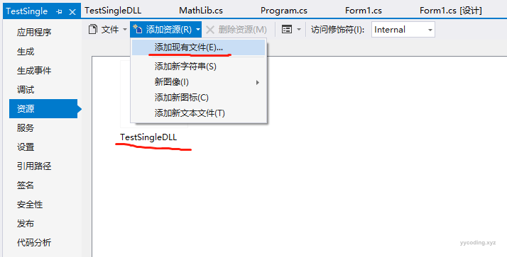 将TestSingleDLL,编译为一个TestSingleDLL.dll之后,在TestSingle中将这个dll添加为资源。