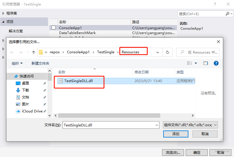 ▲ step3:添加“引用”时,选择Resources目录下的dll文件