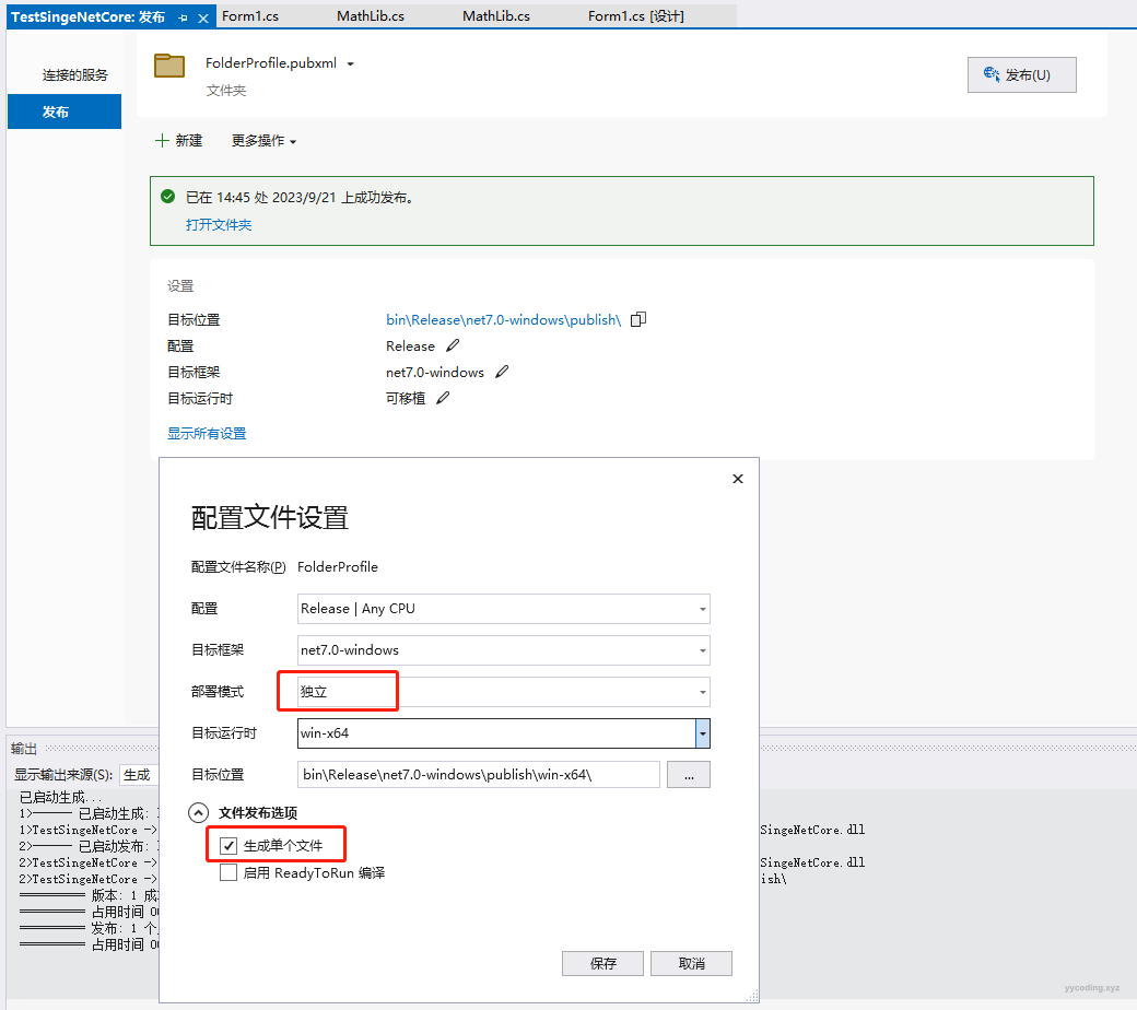 好消息是.NET Core 3.0及以上的版本,在Visual Studio中发布的时候,可以选择单文件版本发布。但在此之前版本的程序,则需要手动处理了。