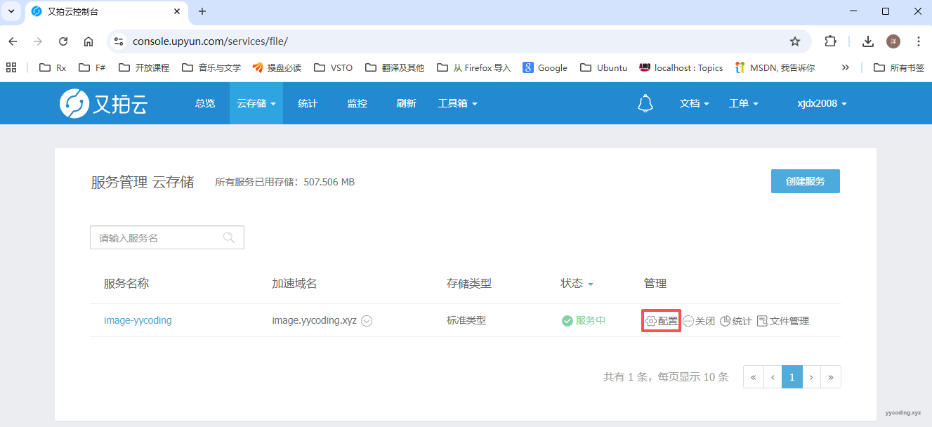 Step1:点击: 又拍云->云存储->管理