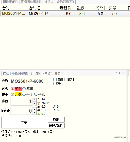 这里面的FixedMargin 加上期权的当前价6×100就等于在快期或者其它交易客户端上看到的保证金:41760。