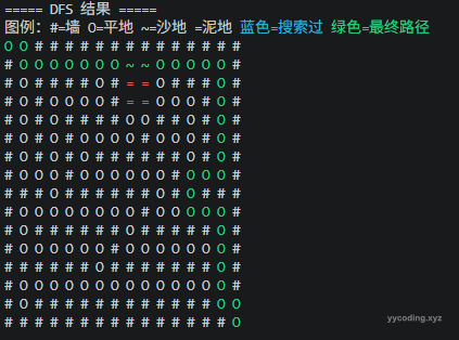 深度优先搜索(Depth First Search,DFS)优先访问节点的后继节点。在迷宫中,它沿着一条路径持续推进,直到遇到障碍或者边界,随后通过回溯,返回上一个分叉点。