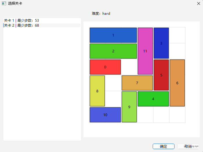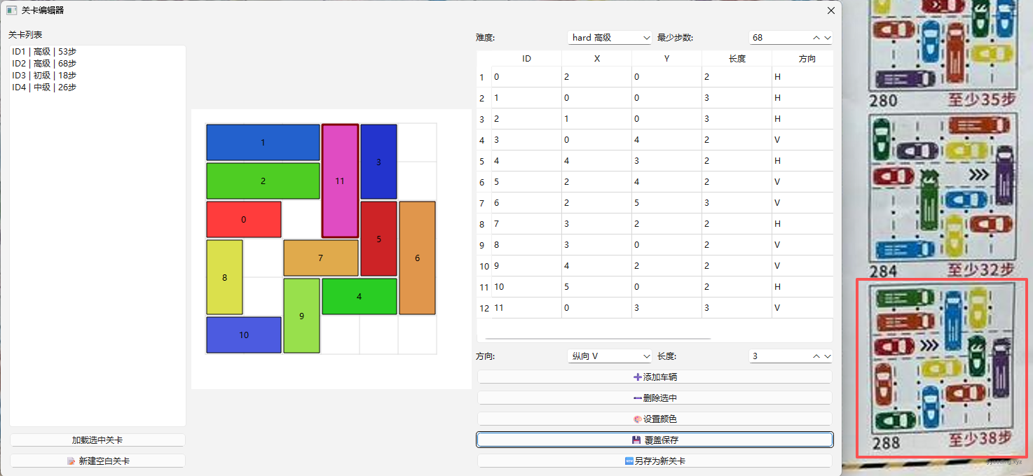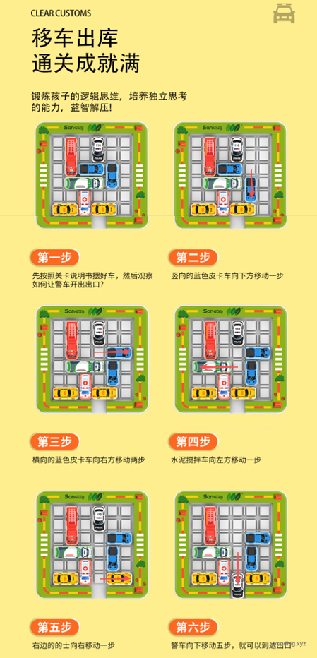 - 通过移开阻挡车辆,将目标车辆移动到出口,即为通关